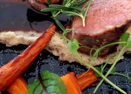 Polędwiczka wieprzowa sous-vide / demi glace / purée truflowe / marchewka karmelizowana w miodzie